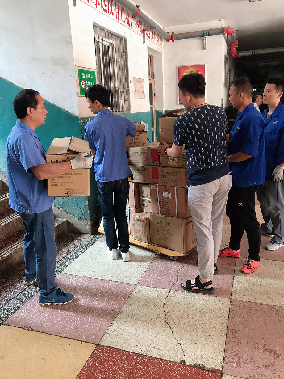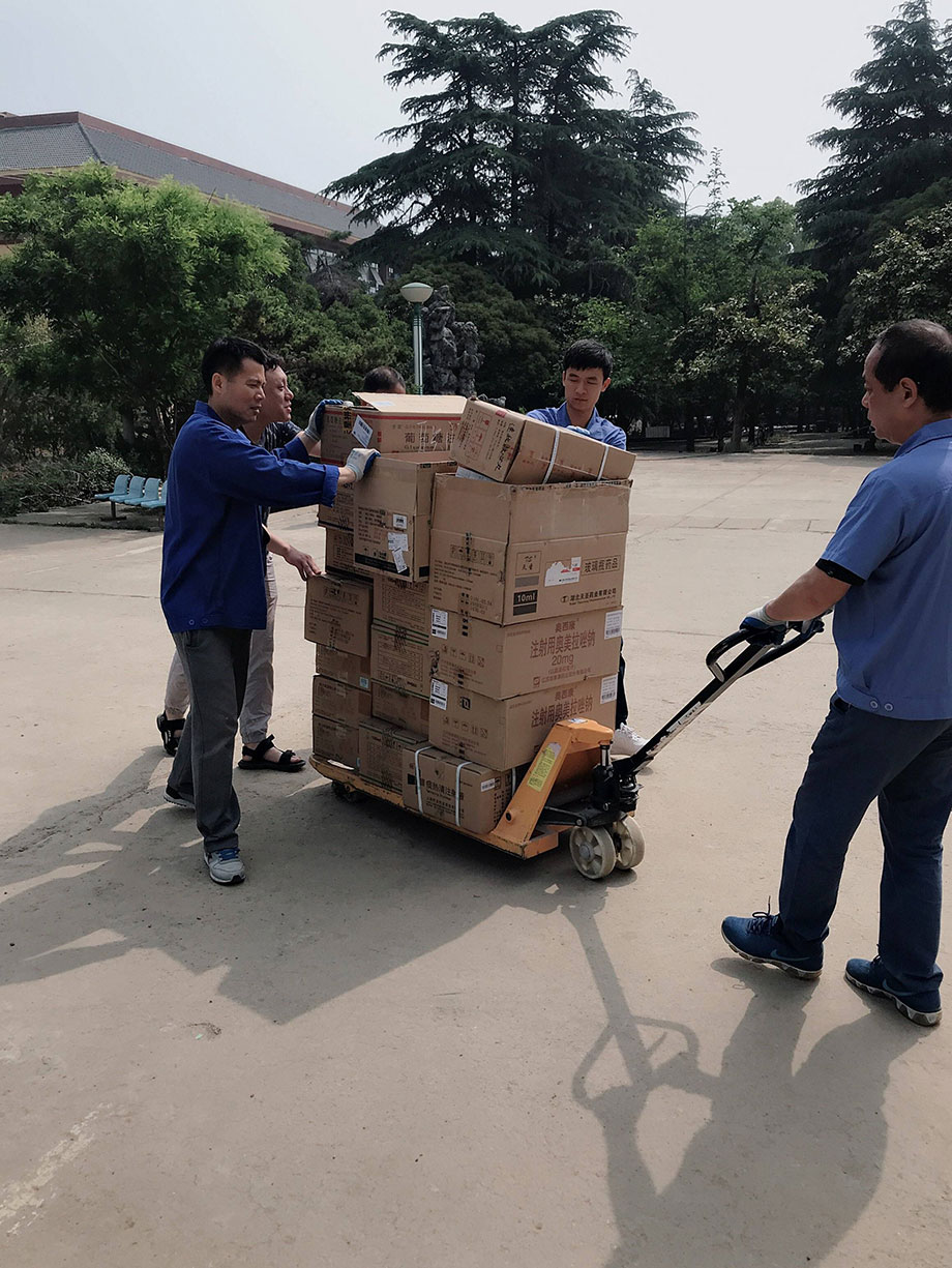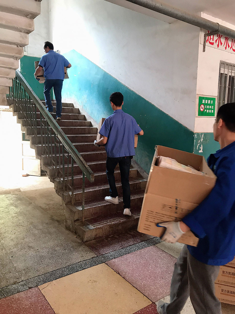 夏日來臨,氣溫升高,道路維修,行車不便。與此同時(shí),藥材科的樓還沒有電梯,為了保證藥品的及時(shí)供給,大家不懼高溫、不畏辛勞,用推車把藥品送到樓下,再一件件扛到三樓。