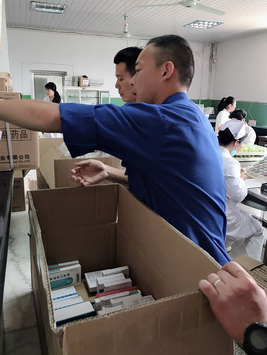 每次藥品全部運(yùn)送到藥材科以后,大家還要和對(duì)方老師及時(shí)核對(duì)藥品,確保藥品的質(zhì)量、數(shù)量、效期、產(chǎn)地、品名、規(guī)格等,確認(rèn)沒有問題才算是配送成功,看著同事們汗流浹背的樣子,真心地為大家點(diǎn)個(gè)贊!